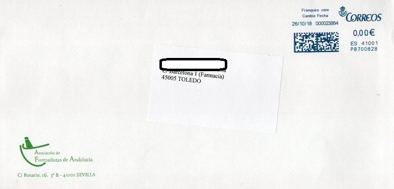 De todas formas mañana sin falta pregunto como franquean ahora estos envíos. Los recibe una farmacia de Toledo.