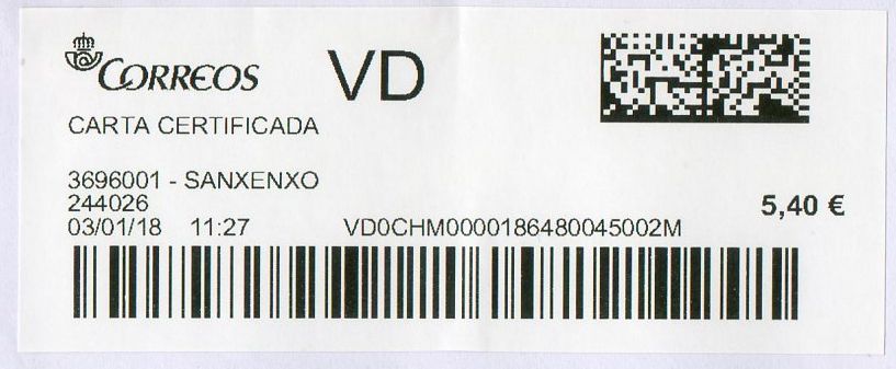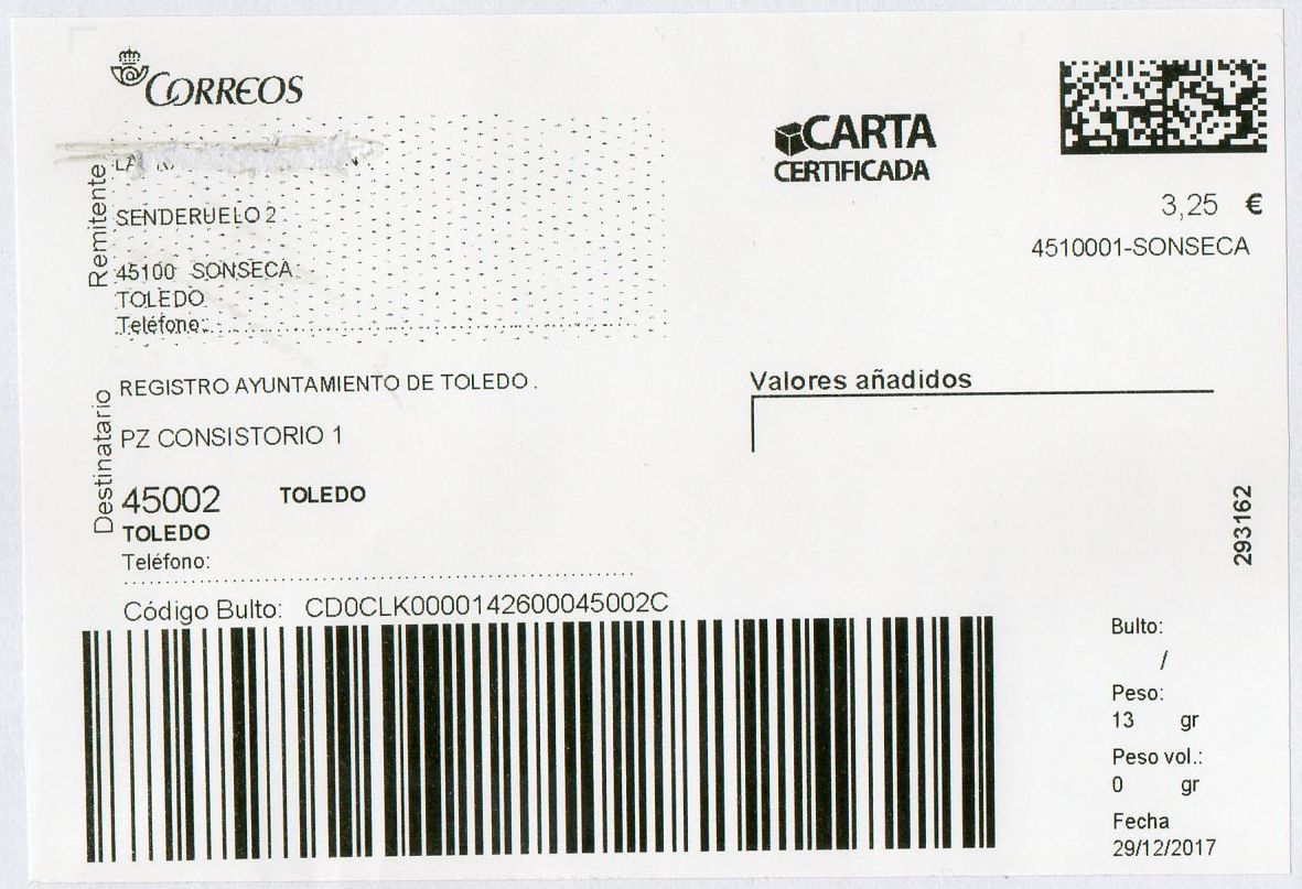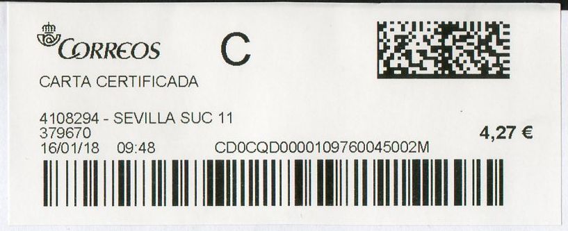 4108294-SEVILLA 11 / CARTA CERTIFICADA / 16-01-18
