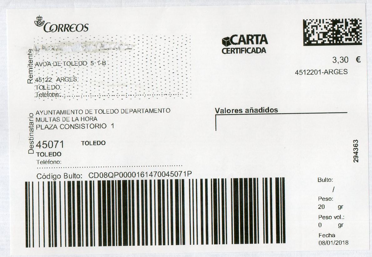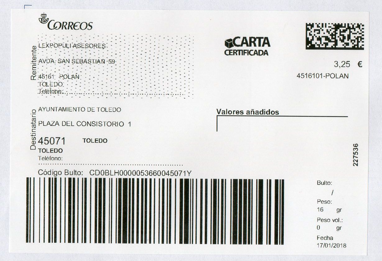 ETG 1350001-PUERTOLLANO / CARTA CERTIFICADA / 17-01-18