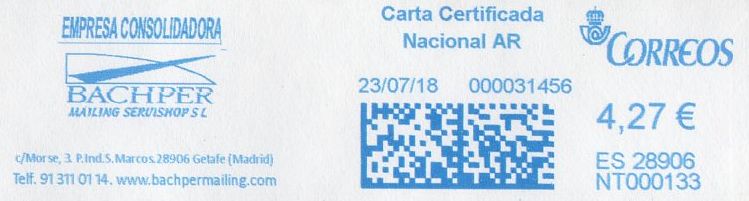Bien, estaba pensando si APAMARA había aprovechado la reposición de su flota Pitney al tiempo que cambiaba su relación con Correos a "Agente", cuando me acorde de una impronta que colgó Xavi a primeros de mes...y había algo que no me cuadraba: En menos de un mes(24 días) puede subir el contador a 600.000? Alguna promoción o campaña estival tiene la culpaMe gustaría ver el membrete de la carta de Xavi