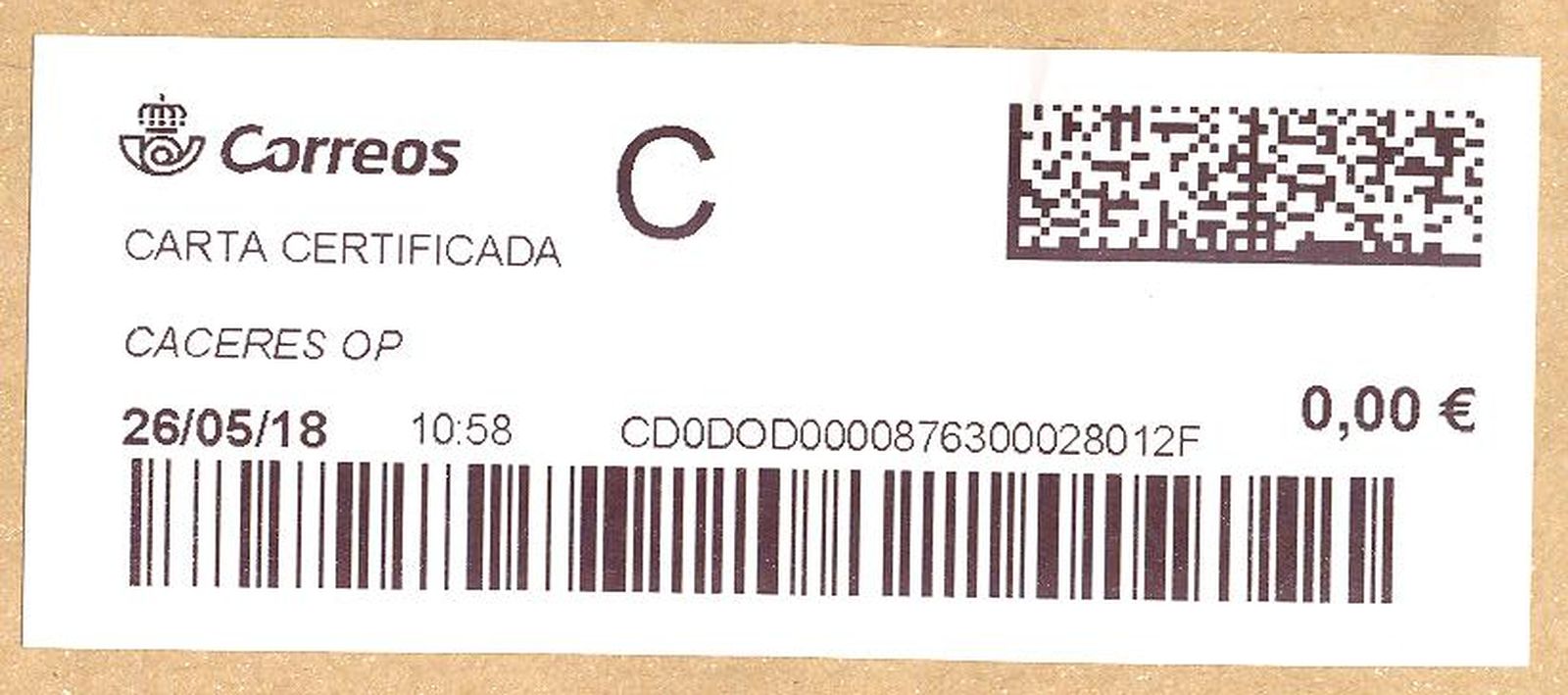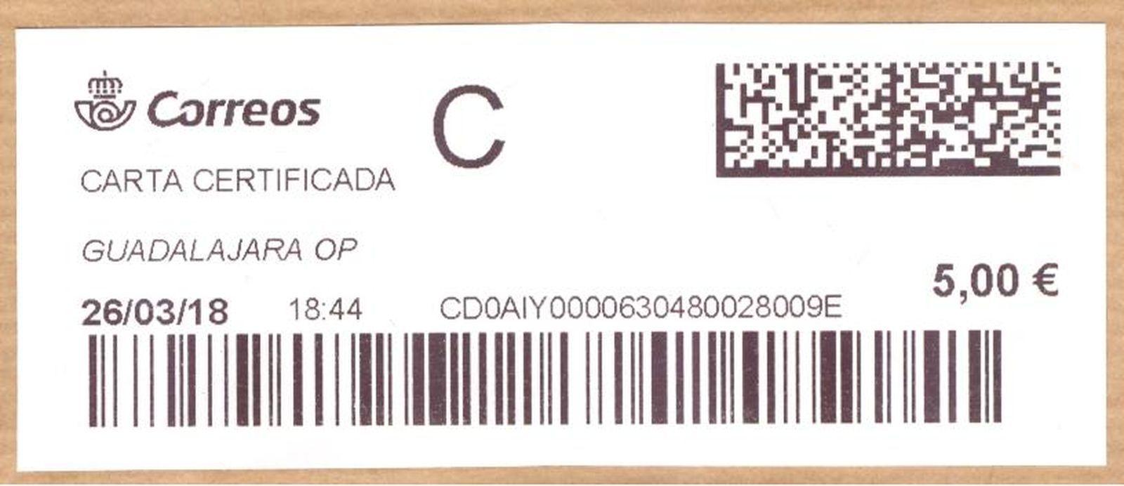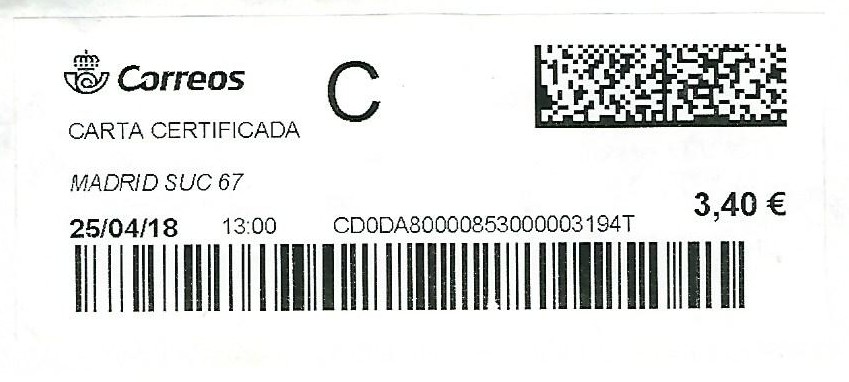 Tipo de envío: Carta Certificada Urgente