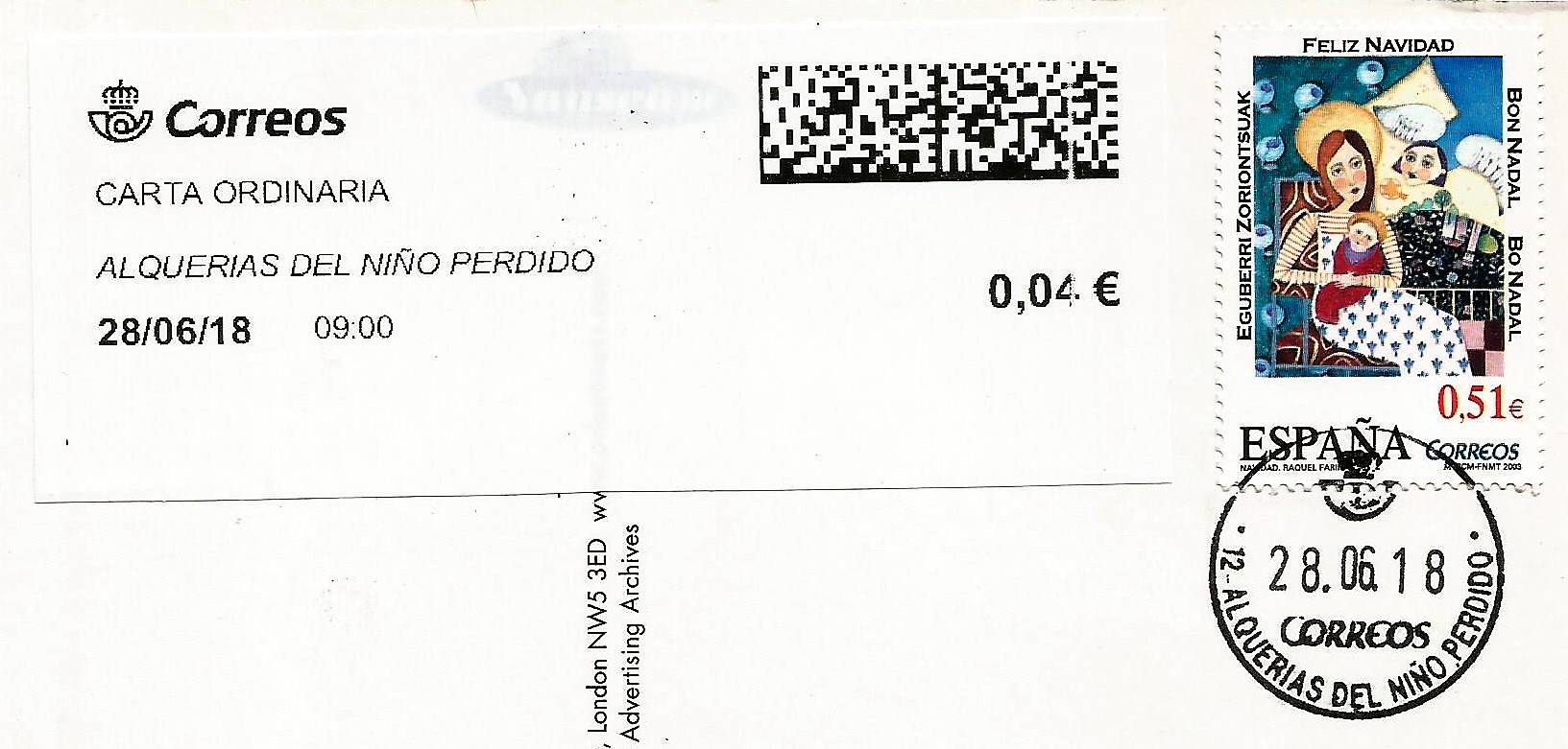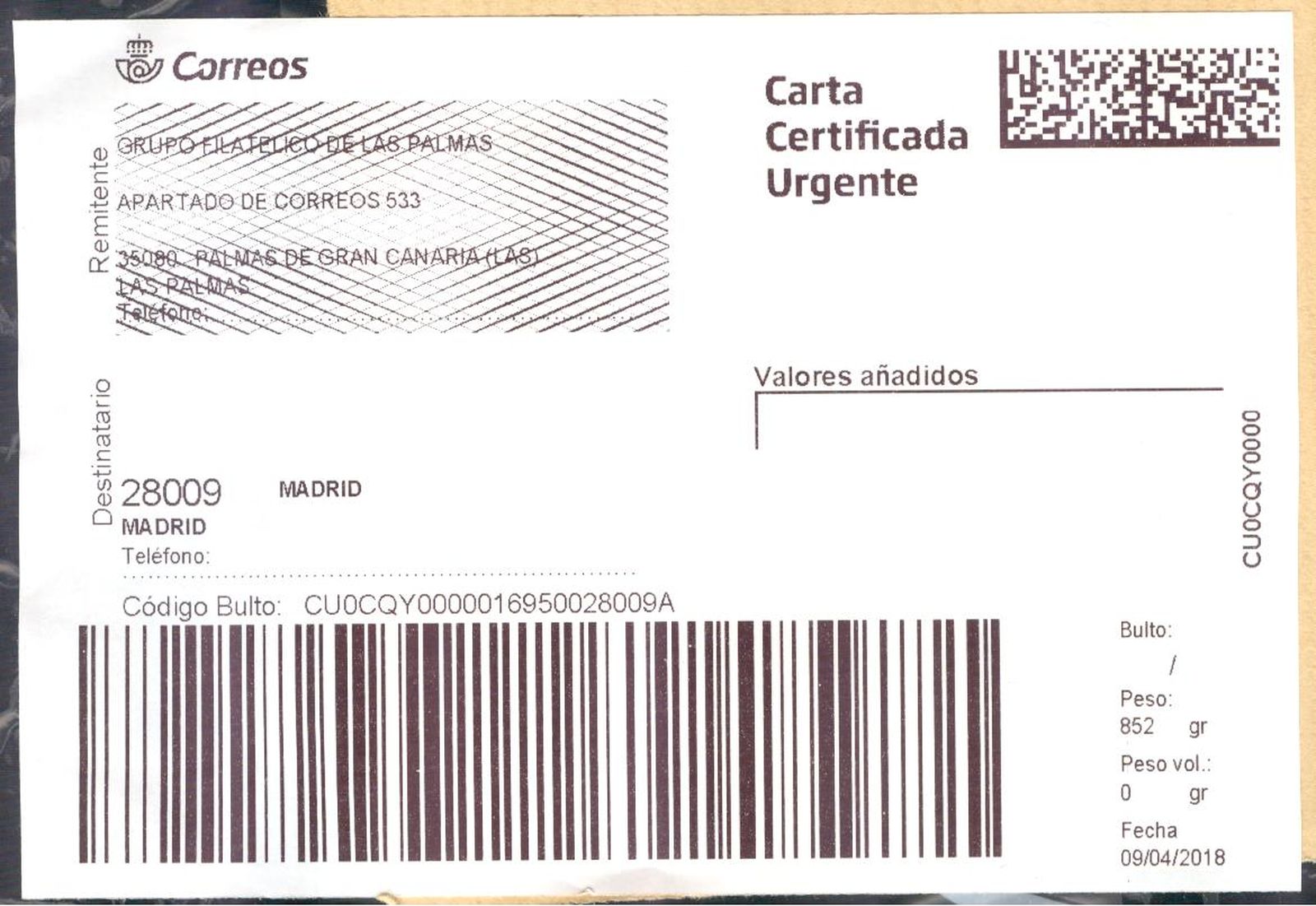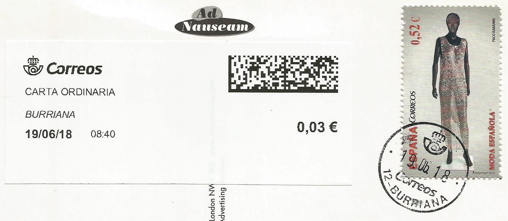 Y, como curiosidad, muestro también el sobre donde venía adherida. Para que luego digan, ni un matasellos. Ni siquiera en el CTA.