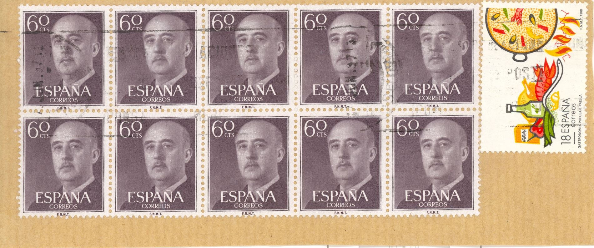 Fragmento con Bloque de 10 sellos de 60cts circulados en 1997.