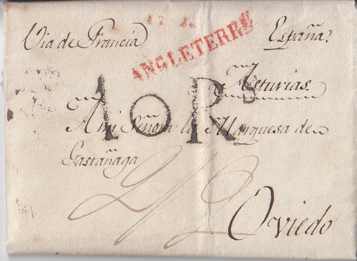 Incluso hay, lo escanearé ahora, un tercer modelo sin punto tras el primer guarismo y con punto tras el segundo, no recogido ni por Tizón ni por García Oliveros en su monografía sobre prefilatelia asturiana. Esta carta es de Londres a Oviedo de 1824.