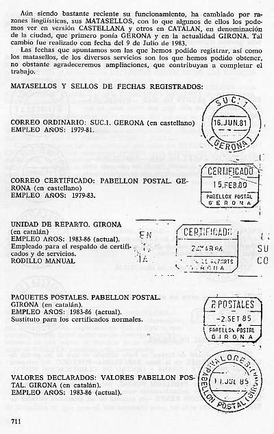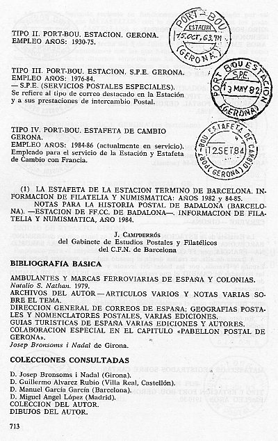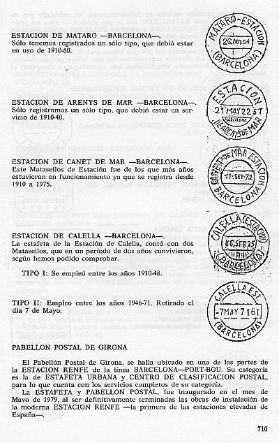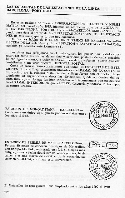 Esta información es del boletín INFORMACIÓN DE FILATELIA Y NUMISMÁTICA del Cercle Filatèlic i Numismatic de Barcelona, del año 1986, sobre LAS ESTAFETAS DE LAS ESTACIONES DE LA LINEA BARCELONA - PORT BOU, escrita por Jordi Campderrós, conocido sin duda por muchos de nosotros, y con quien tuve el gusto de colaborar para ello.