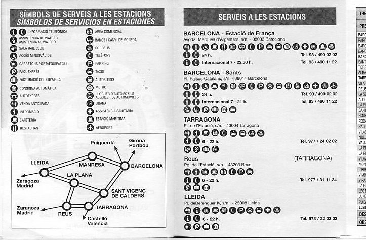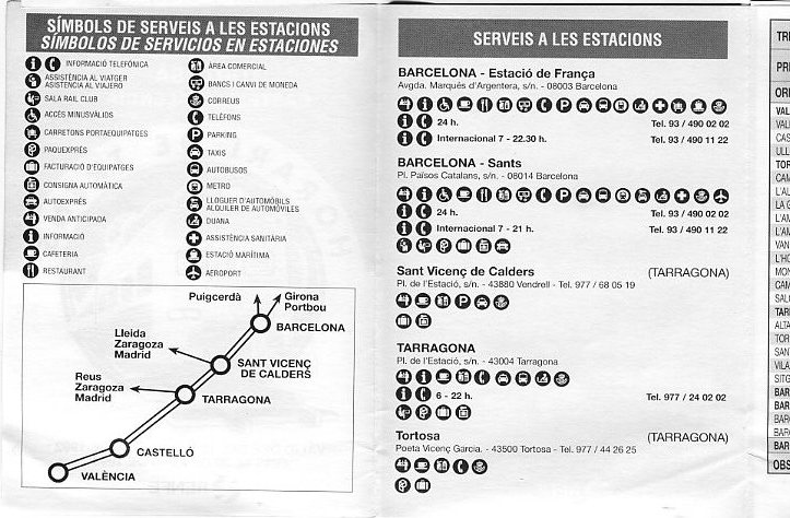 Adjunto fotos de unos folletos de horarios de 1992 de RENFE Regionales Catalunya, en los que indica que en algunas estaciones de sus recorridos hay servicio de Correos ¡?, pero desconozco a qué tipo de servicio se refiere.