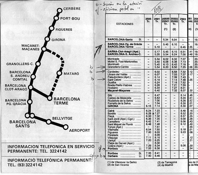 Entre mis notas, que iré desempolvando según las vaya encontrando, veo que tenía apuntadas unas notas en un folleto de horarios de 1984.