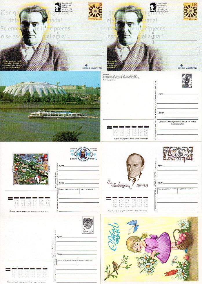 8 Tarjetas Entero postal. Dos de Argentina y seis de Rusia