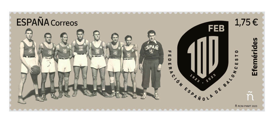 UE 2023. Presidencia española Consejo de la Unión Europea Efemérides. Centenario Federación Española de Baloncesto.