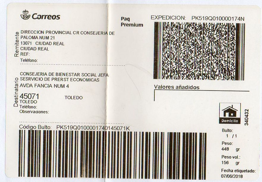 RAFAEL escribió:Pues puede que se refieran a lo siguiente, un ejemplo de etiqueta grande de carta certificada donde se ha sustituido el código de empleado por, parece, parte del código del envío.