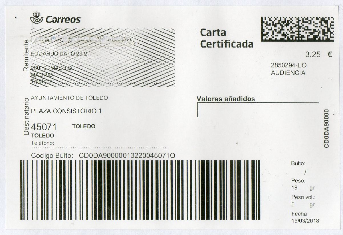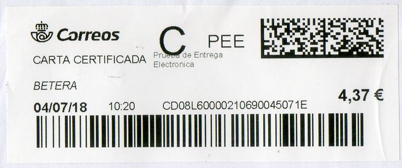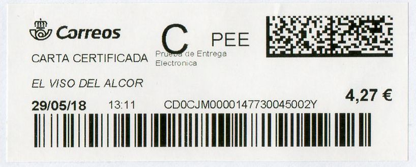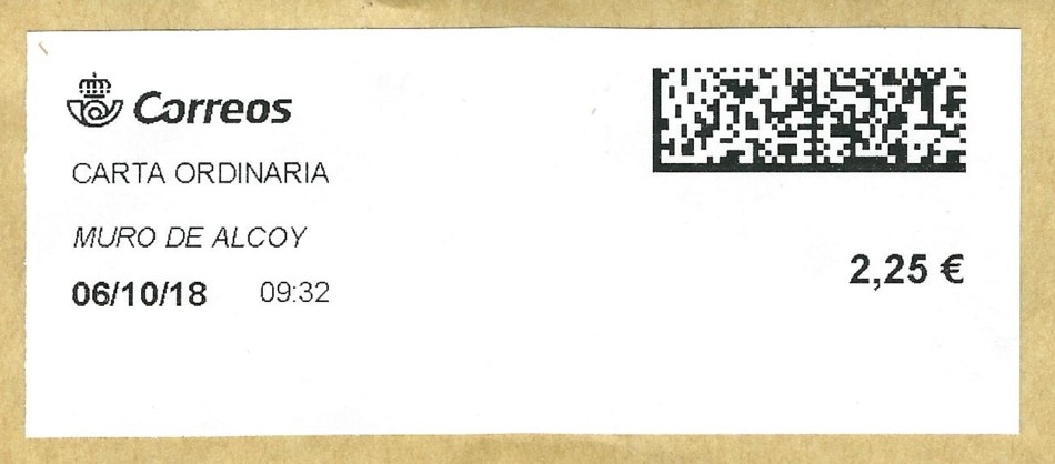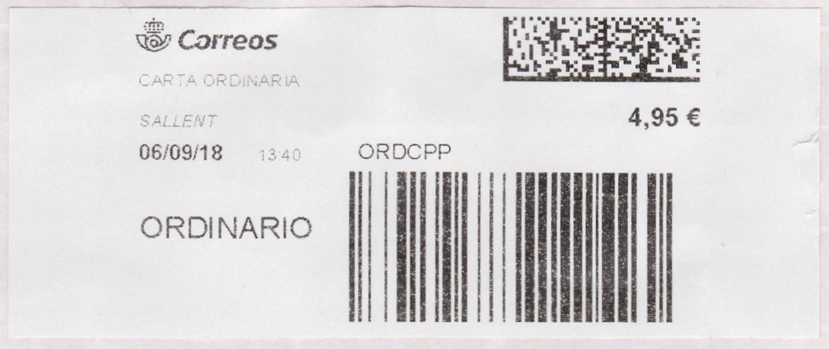 Es una carta ordinaria hasta un kilo de peso que, vete a saber el.motivo, lleva un código de barras.