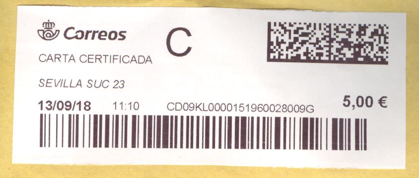 Etiqueta térmica digital. Nueva. Sevilla Suc 23. Carta certificada. 2018-09-13. 11.10. 4x10. 5,00 euros.jpeg