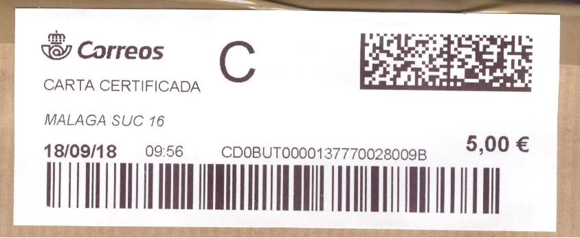 Etiqueta térmica digital. Nueva. Malaga Suc 16. Carta certificada. 2018-09-18. 09.56. 4x10. 5,00 euros.jpeg