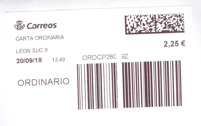 Etiqueta térmica digital. Nueva. Leon Suc 5. Carta ordinaria. 2018-09-18. 13.49. 5,8x10. 2,25 euros.jpeg