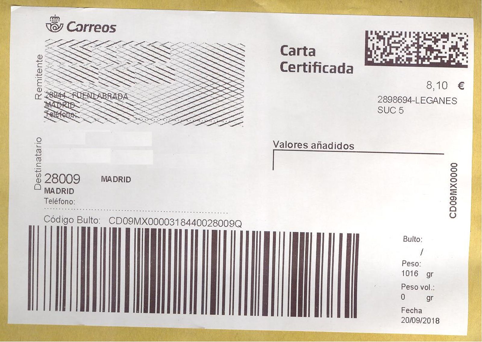 Etiqueta térmica digital. Grande. 2898694-Leganes Suc 5. Código envío. Carta Certificada. 8,10. 2018-09-20. 10x14,7. Baja.jpeg