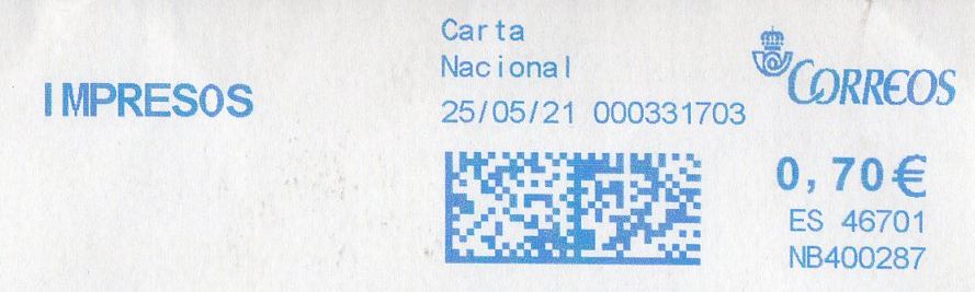 NB400307 de Correos, que se dio de baja aprox_ en noviembre del 20 por la NB400207(alta) que no hemos podido localizar....
