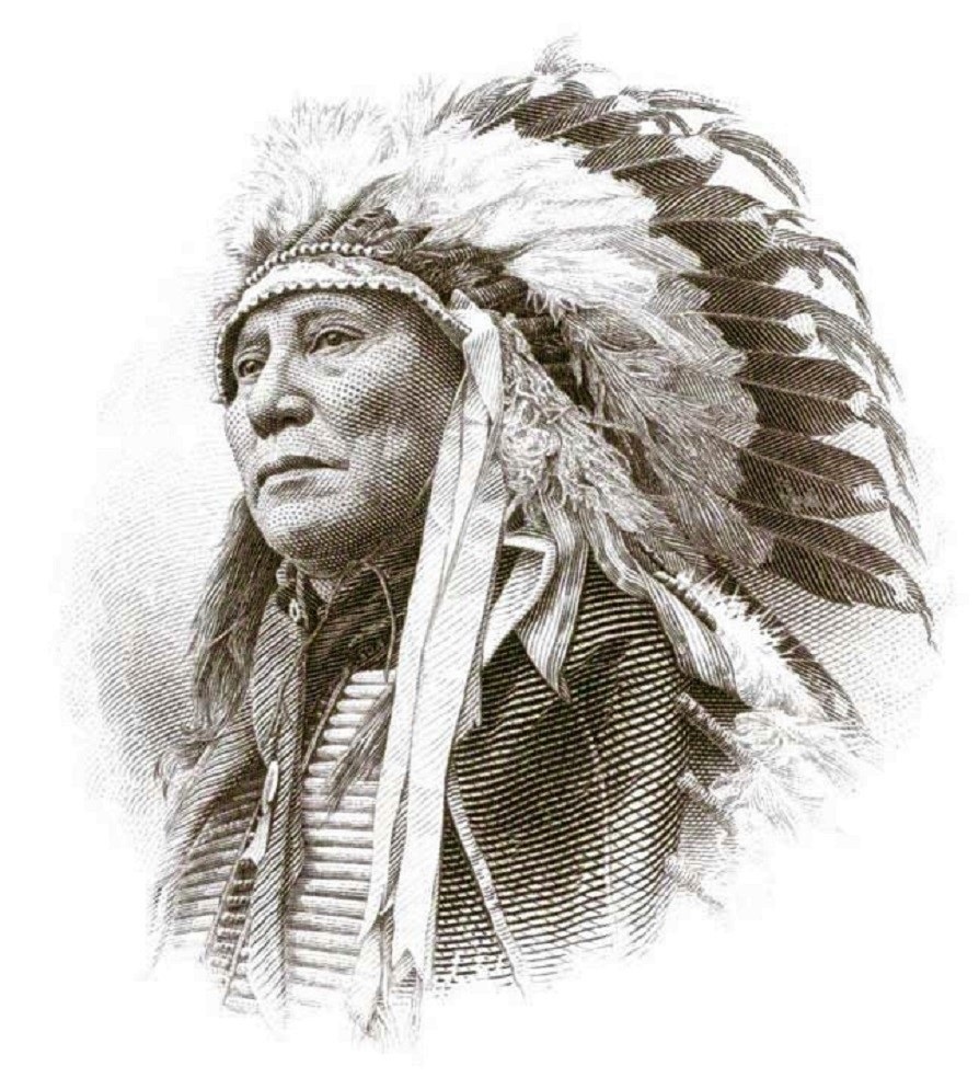 El nativo que grabó Smillie en el billete es un jefe indio conocido como Running Antelope (1821-1896), Antílope Corredor, con leyenda de ser intrépido en la guerra y orador persuasivo, y se dice que fue consejero de Toro Sentado.
