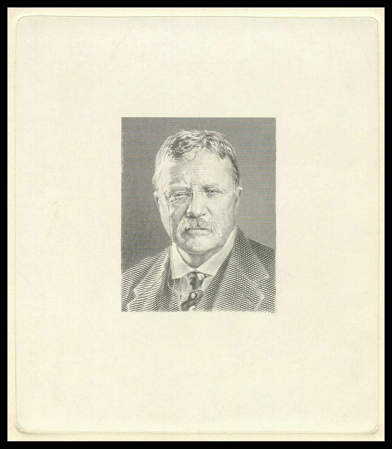 Prueba de estado del último retrato en el tiempo que de Theodore Roosevelt realizara Smillie, poco antes de dejar el BEP a principios de los años veinte