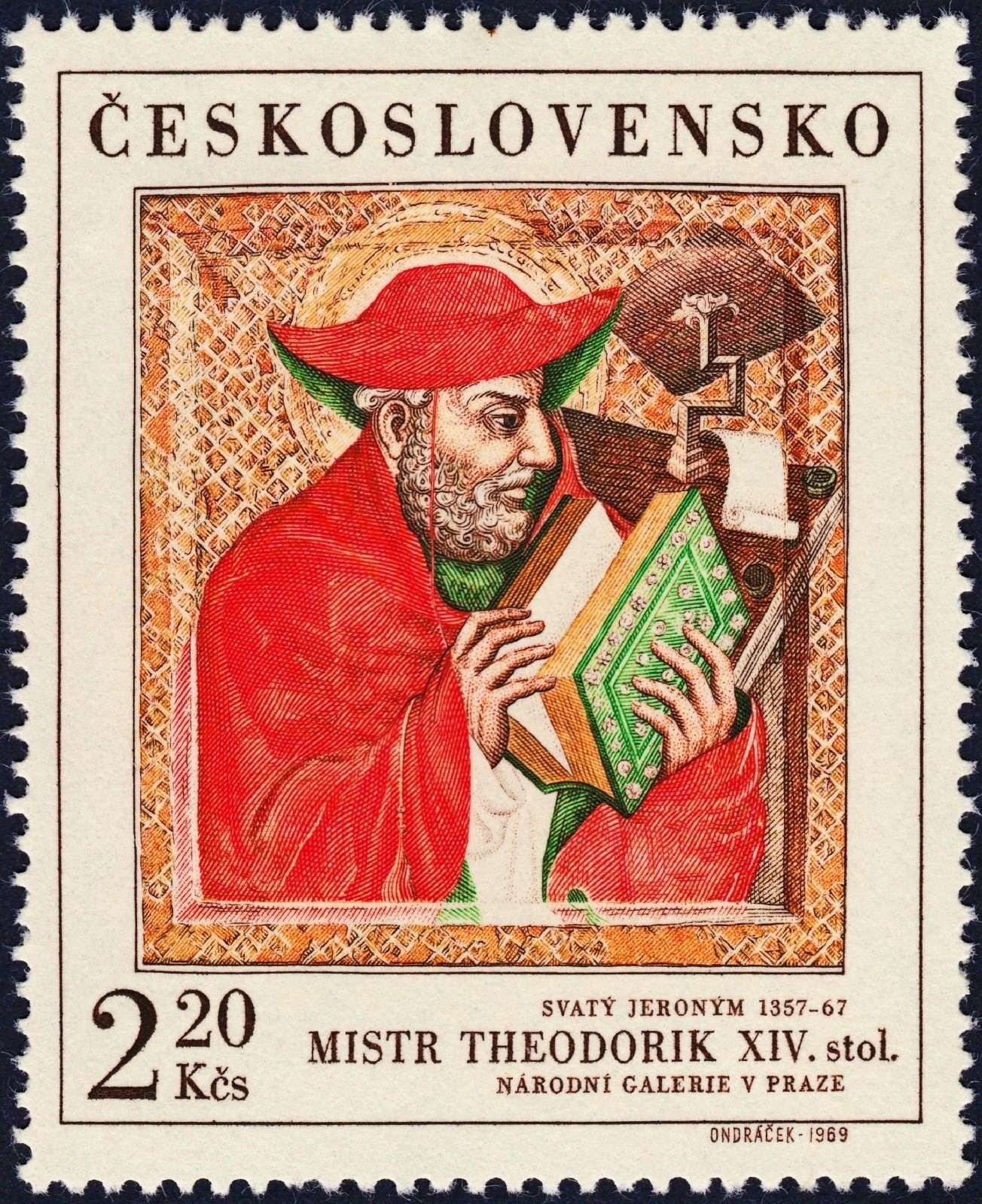 Checoslovaquia, 1969, Arte, San Jerónimo, de Mistr Theodorik. Sello diseñado y grabado por Miloš Ondráček. Calcografía