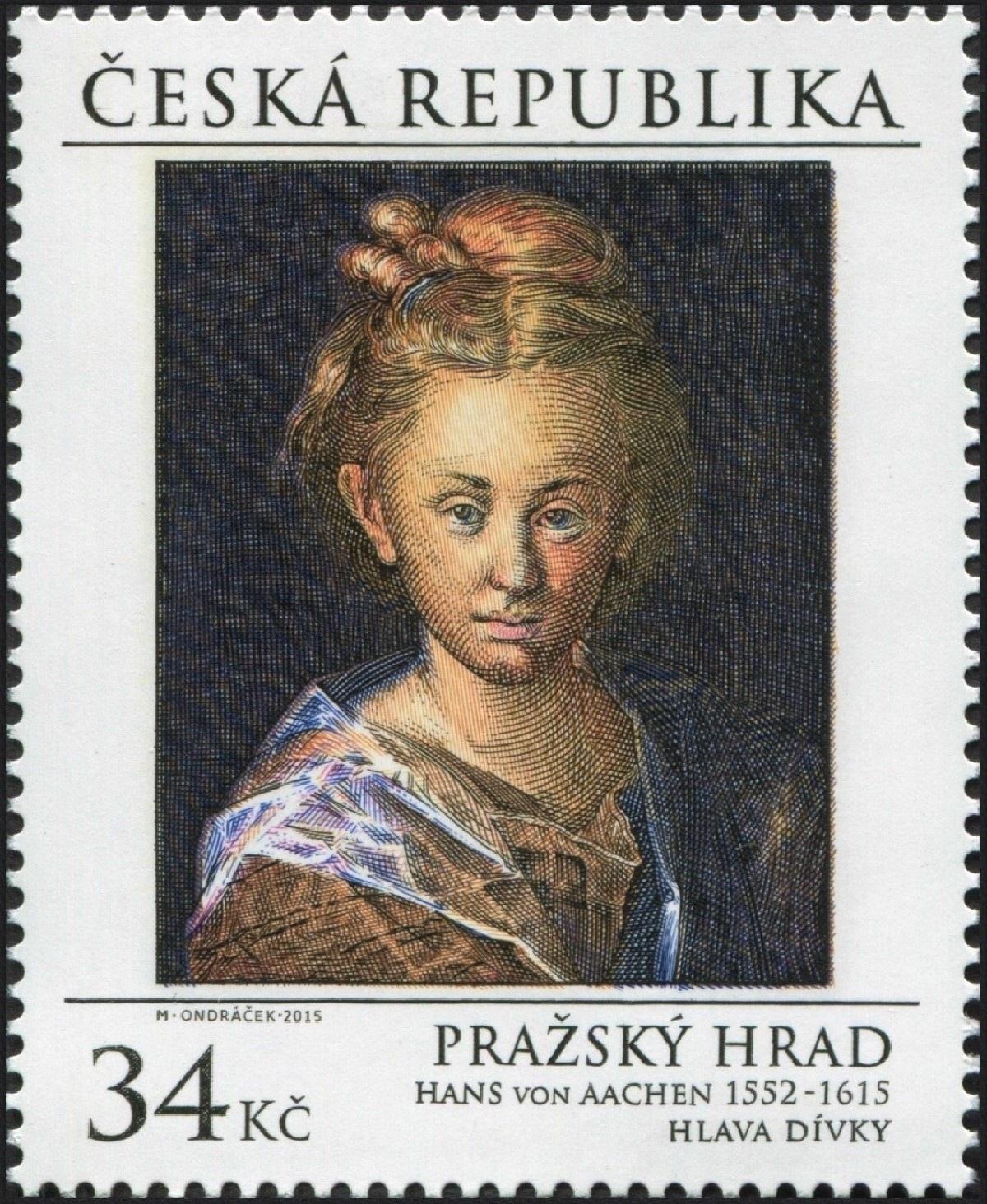 República Checa, 2015, Arte, “Retrato de niña” (1612), de Hans von Aachen (1552–1615). Sello diseñado y grabado por Miloš Ondráček; calcografía