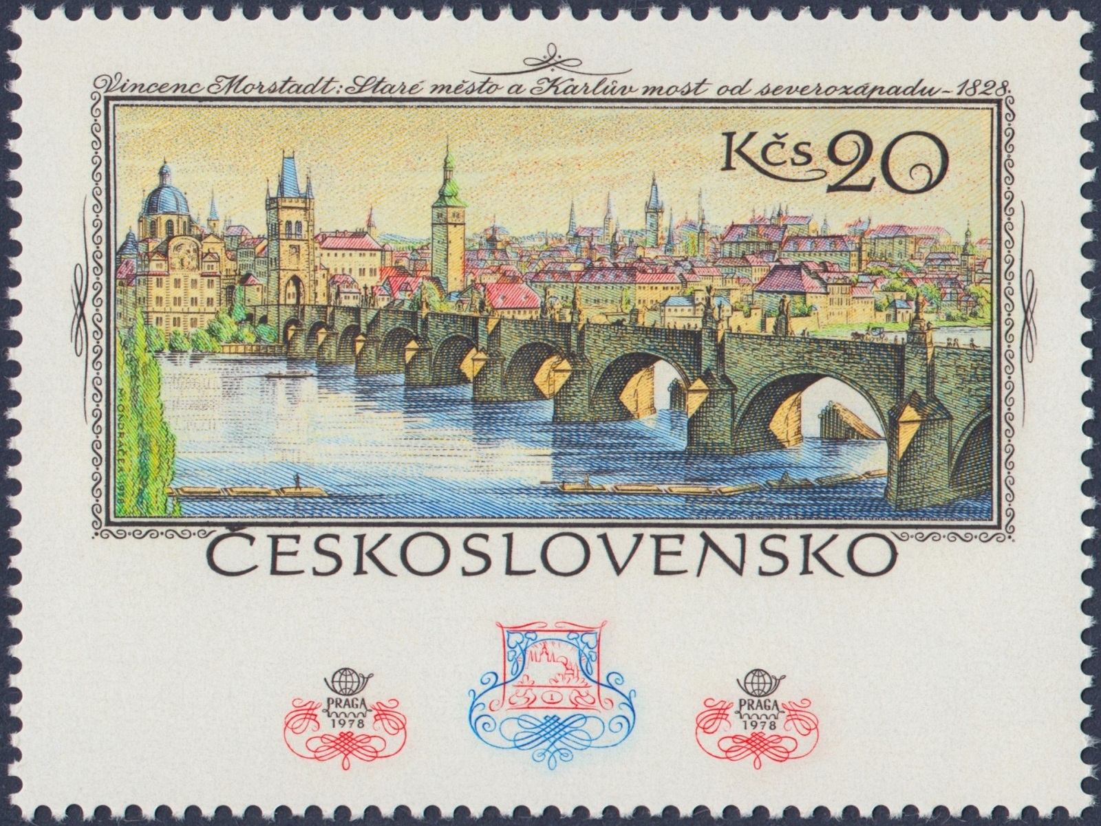 Checoslovaquia, 1975, Arte, “La vieja Praga”, de Vincenc Morstadt. Sello diseñado y grabado por Miloš Ondráček. Calcografía