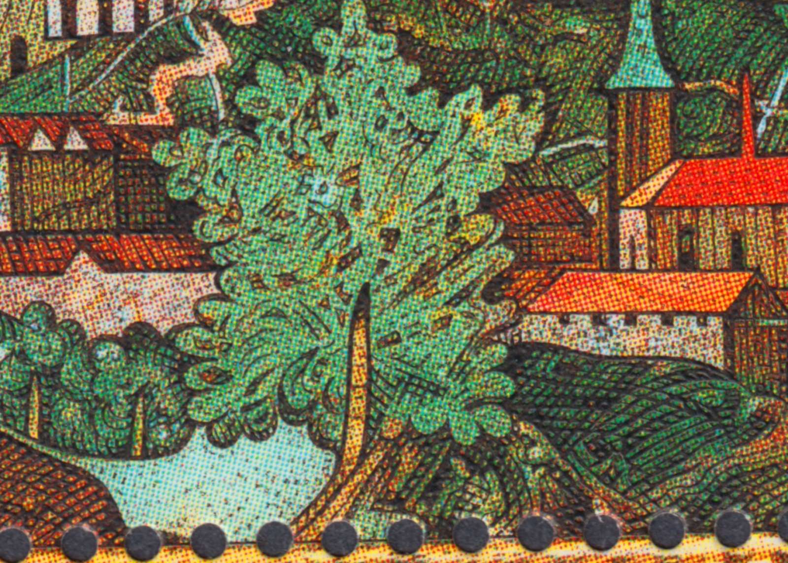 Detalle de la impresión mixta en calcografía (negro) y offset (color)