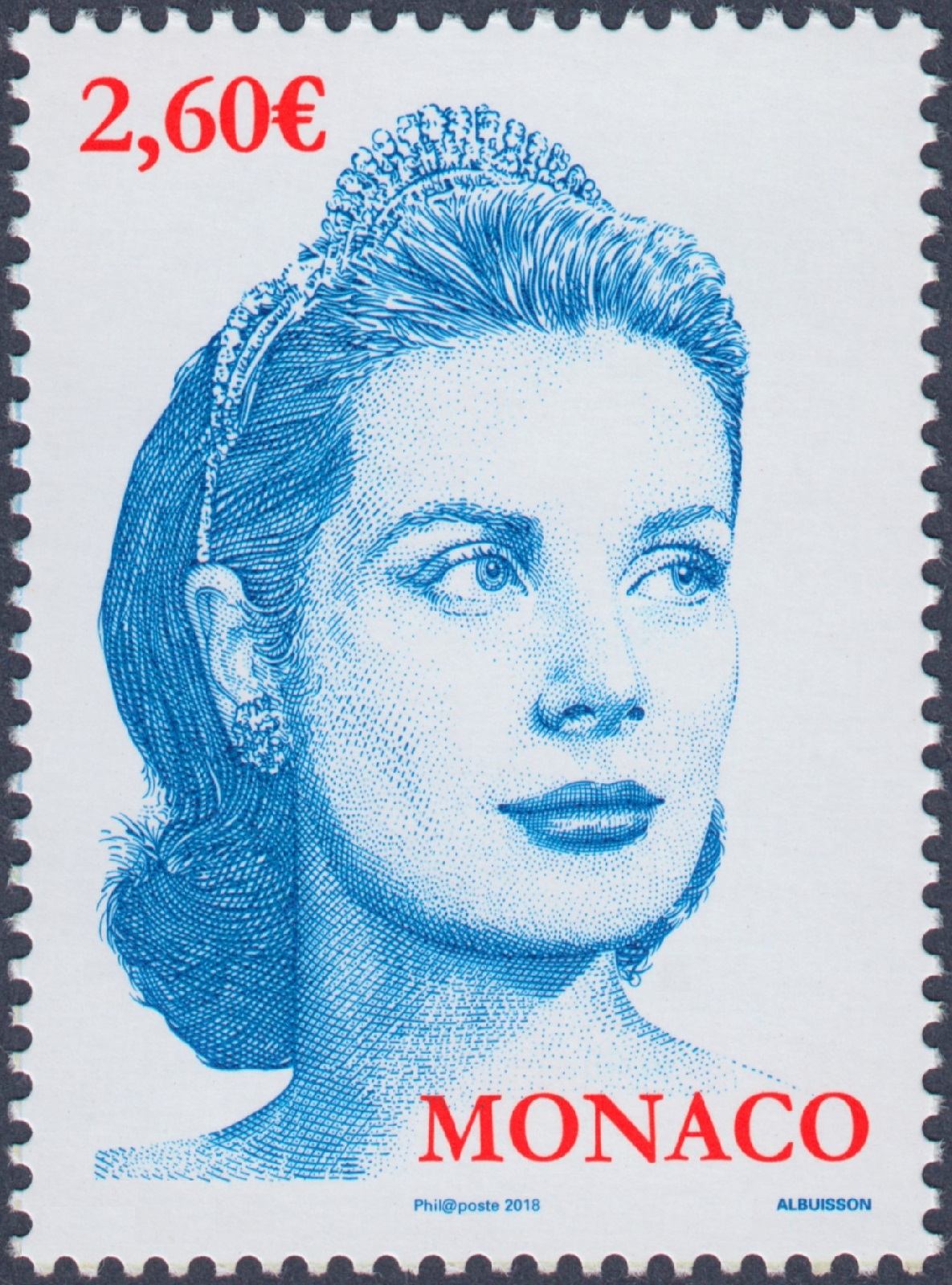 Mónaco, 2017, Grace Kelly. Diseño y grabado de Pierre Albuisson, sobre la fotografía de 1956 de Yousuf Karsh. Calcografía