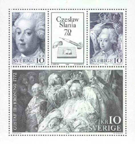 El mestro polaco realizó dos grabados diferentes en esta emisión conjunta. Vuelvo a poner imágenes mejoradas de ambos sellos, por apreciar diferencias.