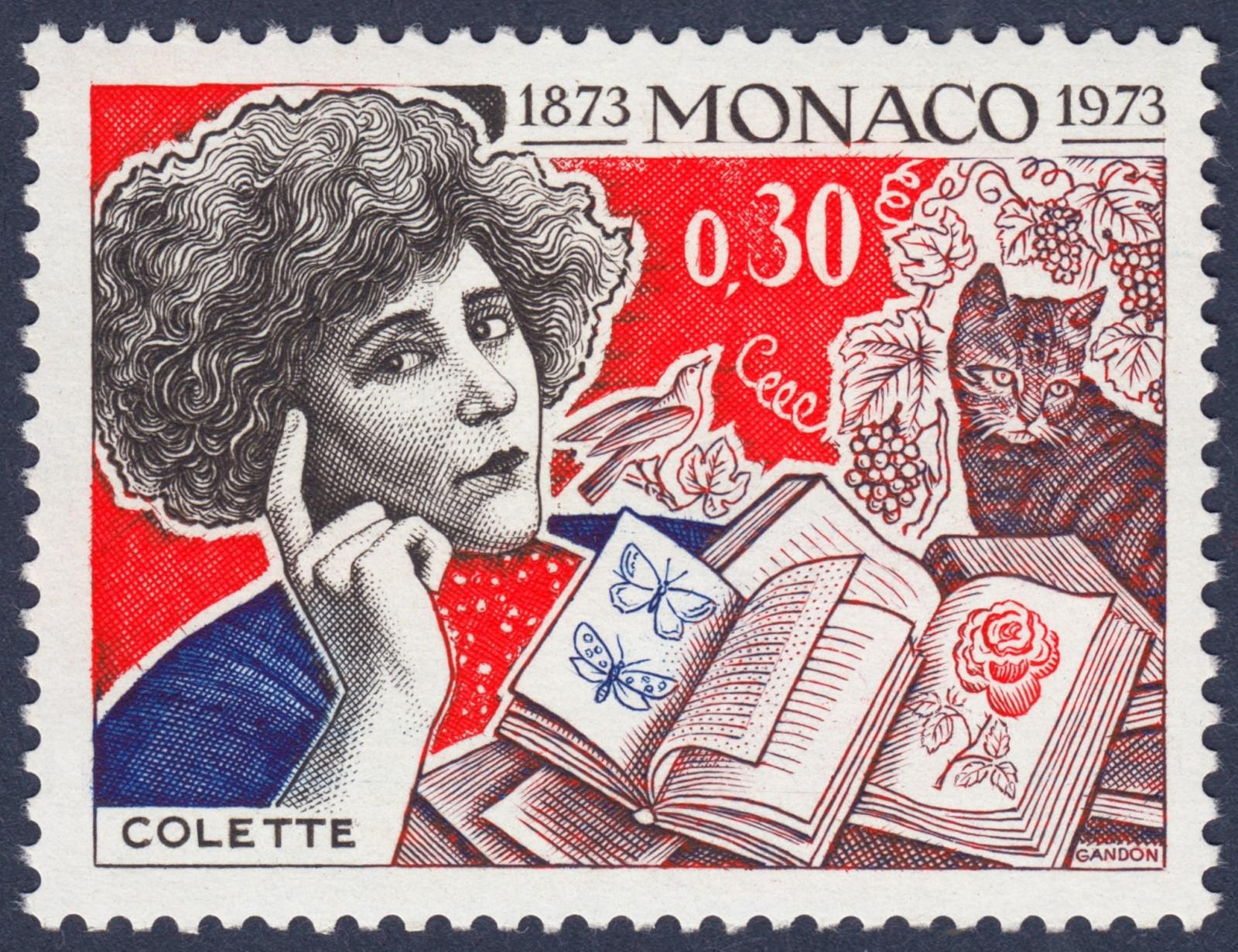 Mónaco, 1973, Sidonie-Gabrielle Colette. Diseño original adoptado y sello emitido, después del grabado a buril de Pierre Gandon. Calcografía