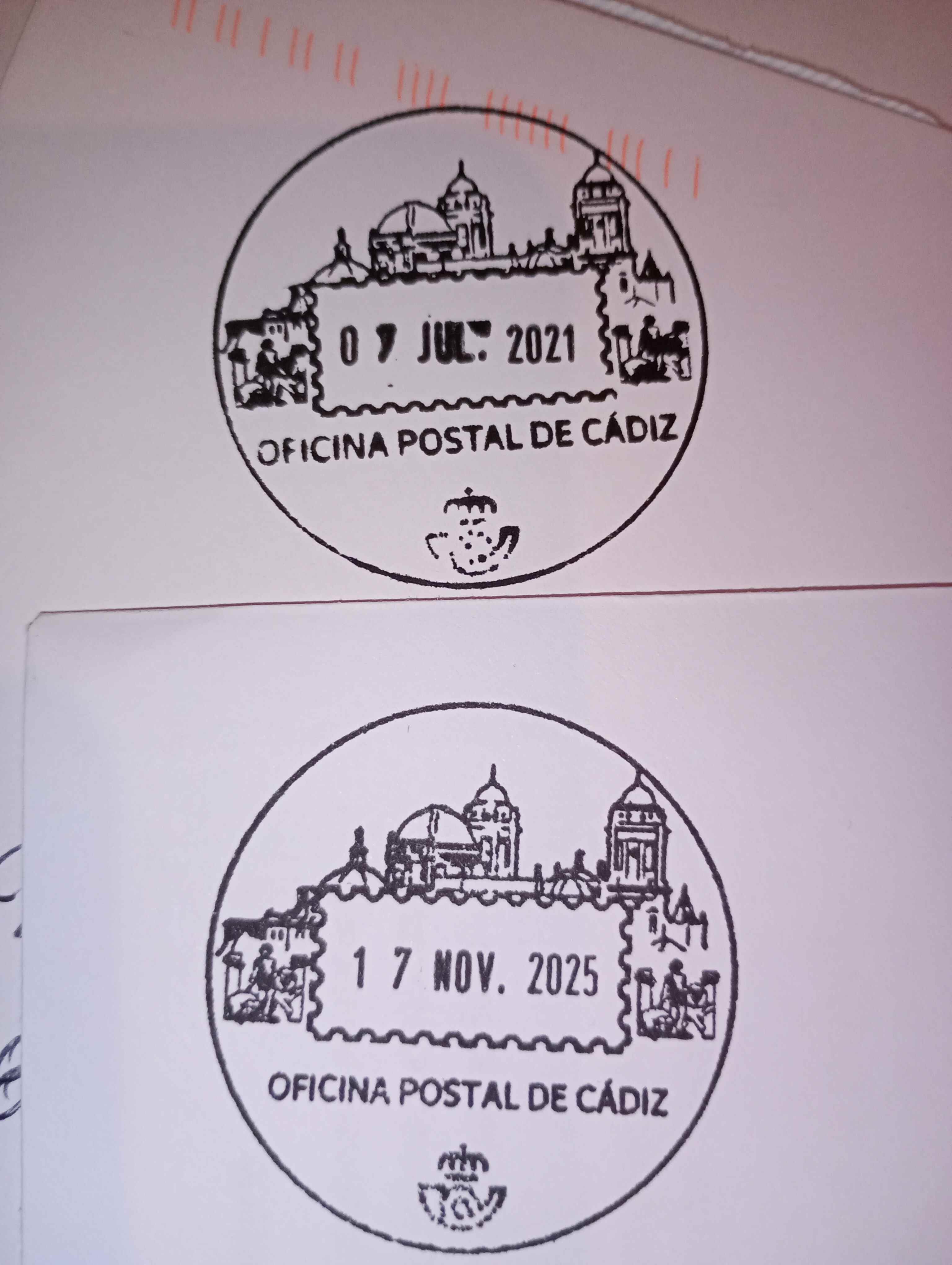 Yo también he solicitado a la Oficina Principal de Correos de Cádiz el matasellos turístico y me han enviado el mismo, el que viene en una sola línea "OFICINA POSTAL DE CÁDIZ".