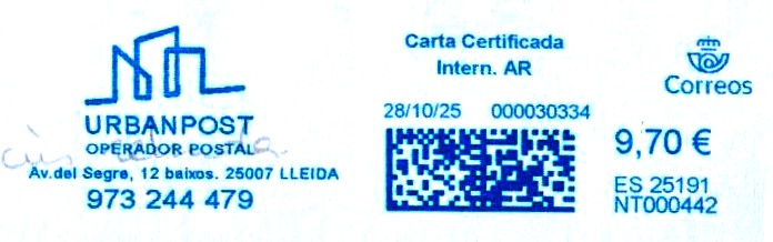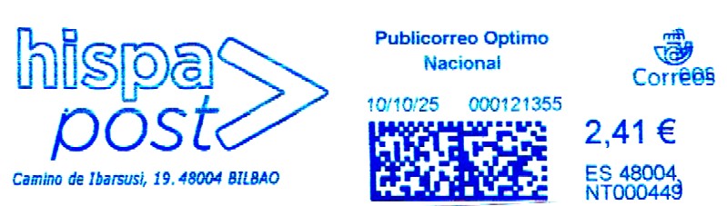 Hacía tiempo que no veía un franqueo digital--NT000449 Hispa-Post en Bilbao