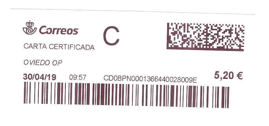 Etiqueta térmica digital. Nueva. Oviedo OP. Carta certificada. 2019-04-30. 09.57. 4,2x10. 5,20 euros.jpeg
