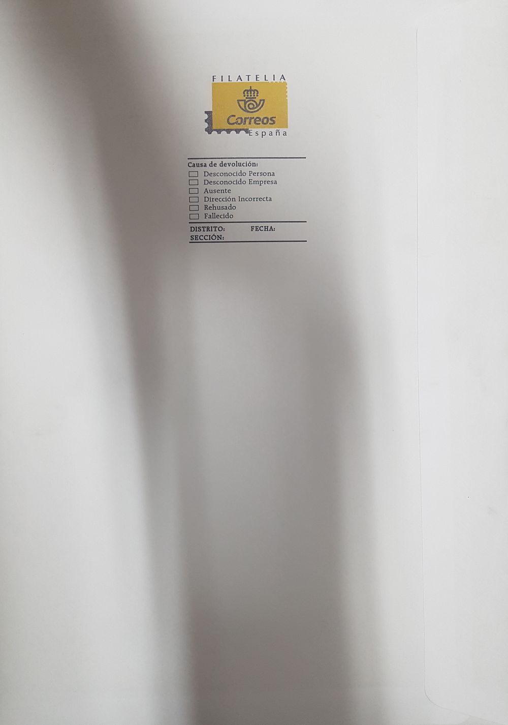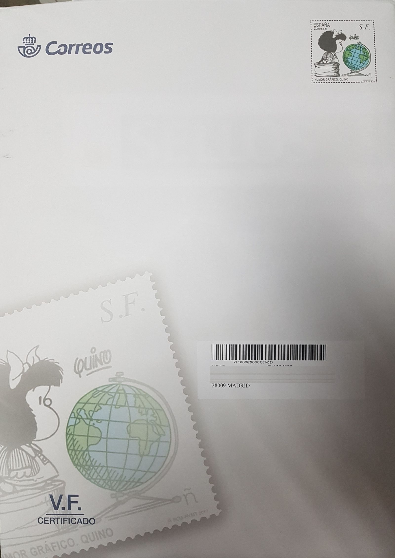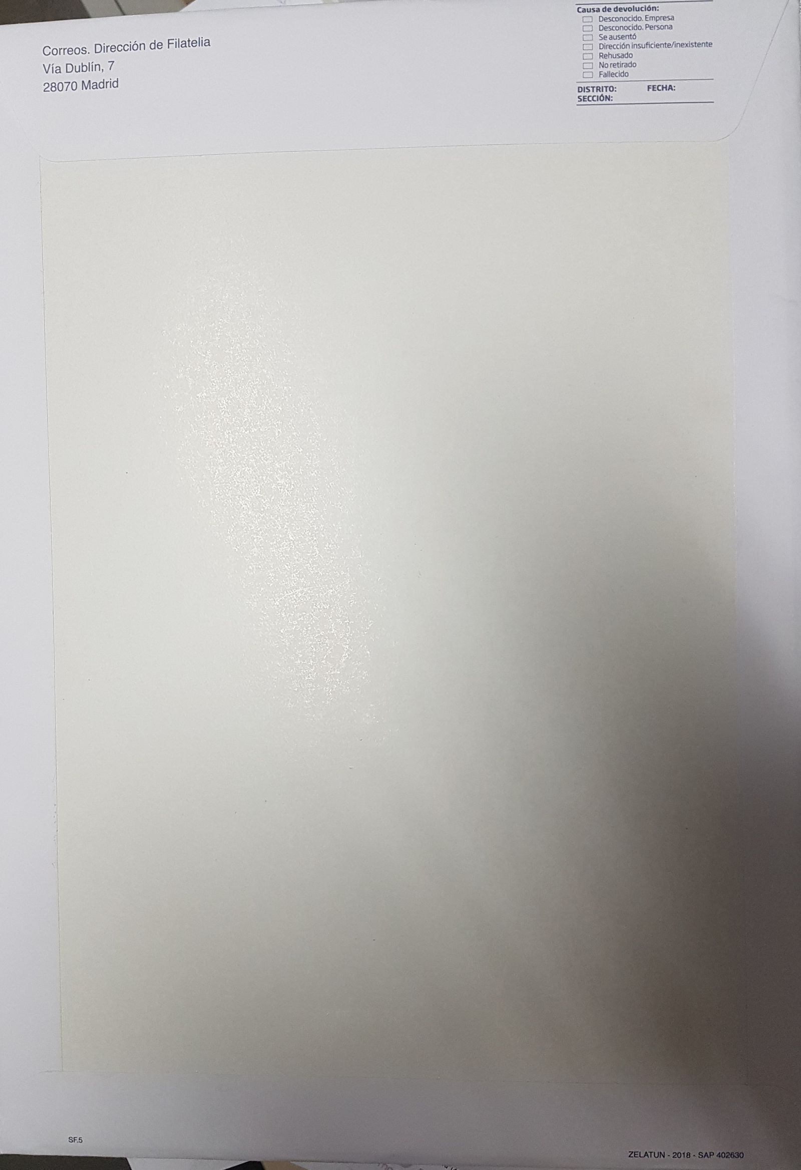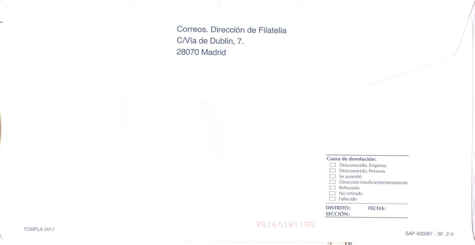 - Remitente: Correos. Dirección de Filatelia. Vía Dublin, 7. 28070 Madrid