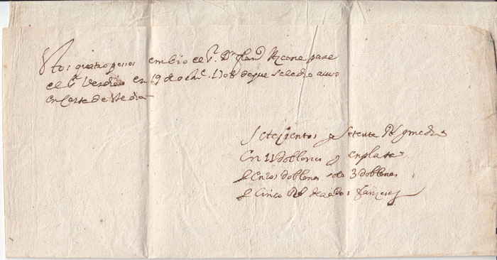 En mi opinión es un pieza extraordinaria esta envuelta de doble uso anterior a 1717, con un porteo en tarjas navarras en su trayecto a Pamplona y en sueldos aragoneses en su trayecto a Zaragoza.
