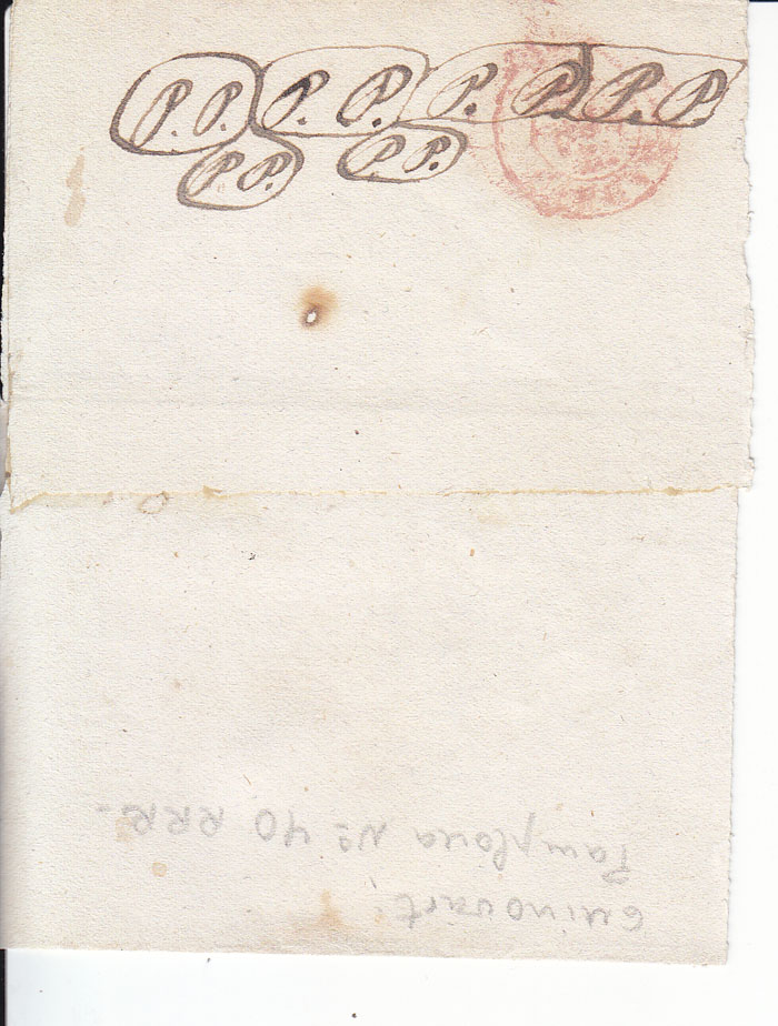 La inscripción del dorso dice "Por el correo escribirá tu tío" y la firma de lo que se deduce (además de por la ausencia de porteo) pudo haber circulado fuera de valija.