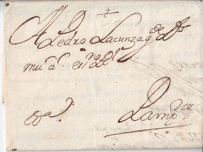 Otra a Pedro de Lacunza, mandada desde Zaragoza en 1713.
