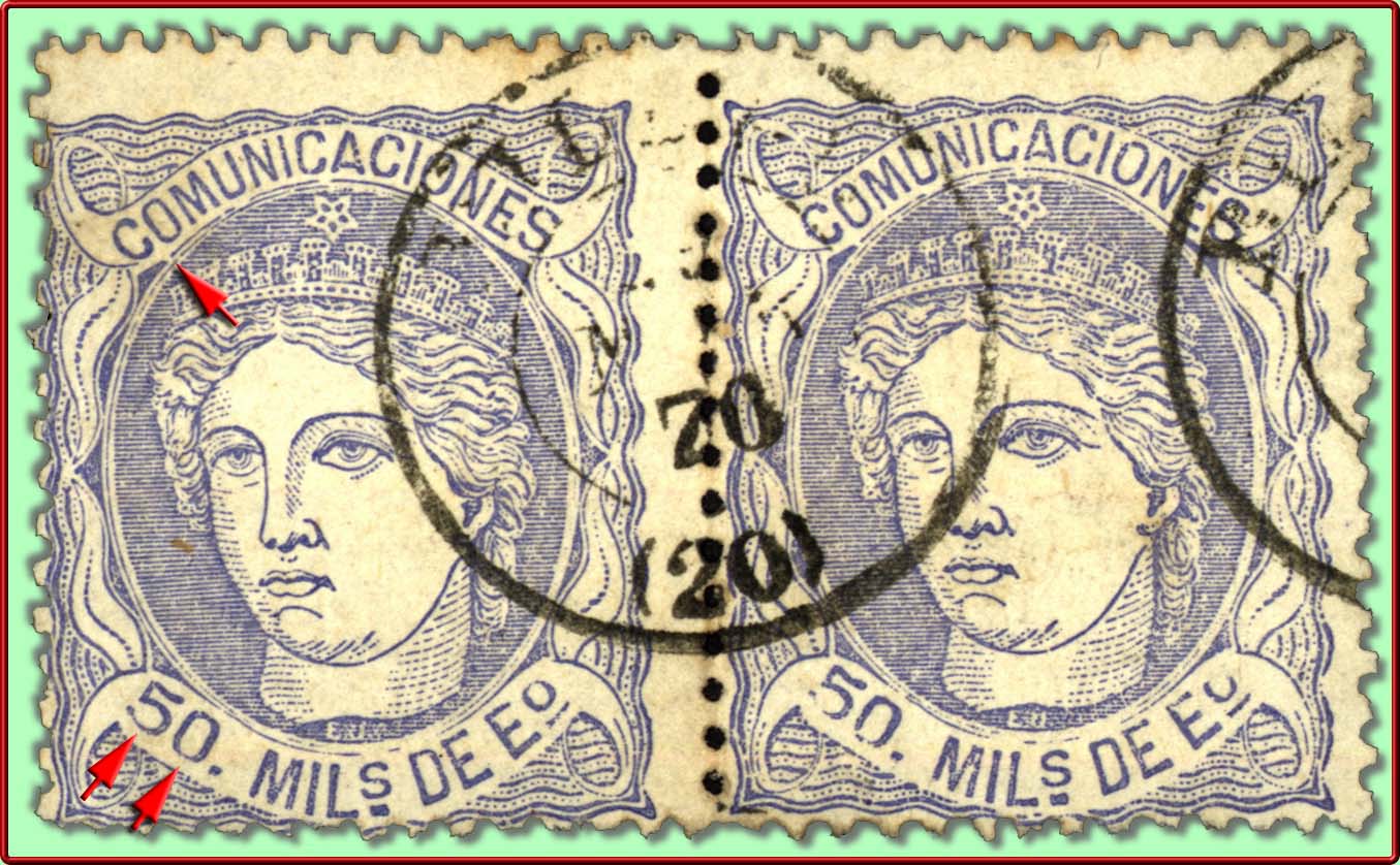 Esta falsificación es la más heterogénea de todas las creadas (y conocidas, que no todas se conocen) en España ya que en los grandes bloques y pliegos examinados se dan alrededor de 10 sub-tipos distintos lo que hace sea de enorme dificultad su asignación como Tipo ... tanto que después de casi medio siglo en algunos casos quien escribe aún navega en aguas procelosas ... lo cual es un fastidio muy fastidioso ...
