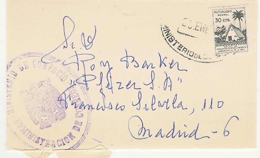 y Servicio Oficial Madrid (creo, no estoy muy seguro ... ¿Estafeta Oficial, quizás?). Circular de 30 mm. de 30 JUL 63. Está como llegada.