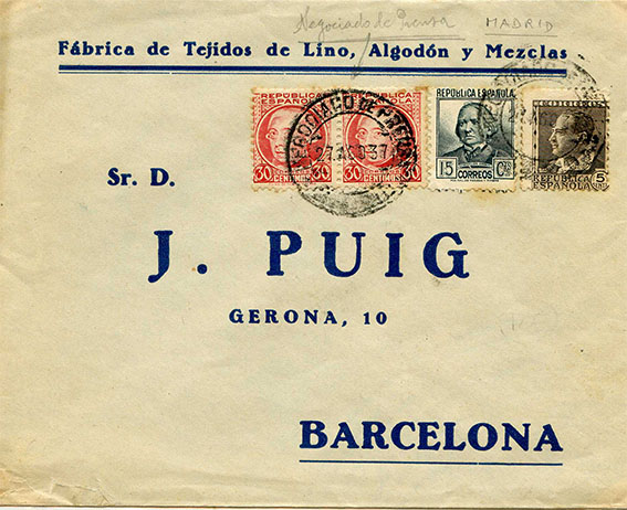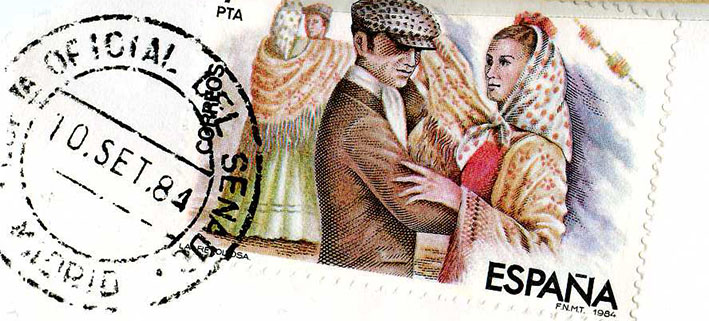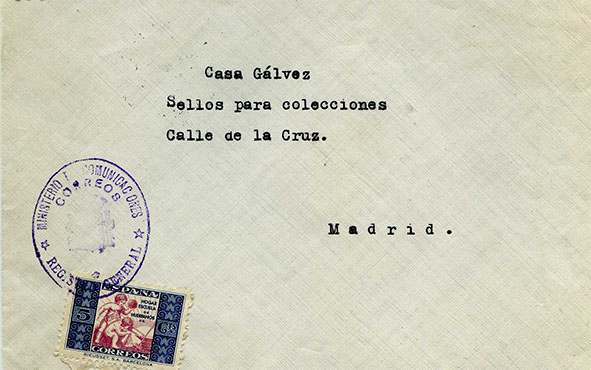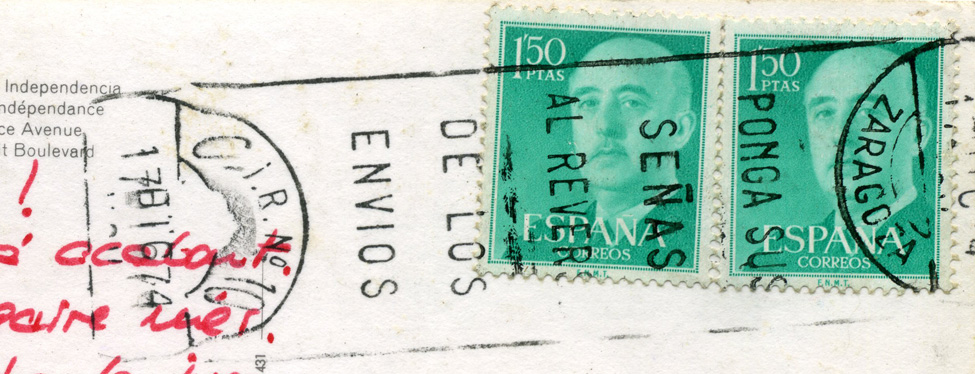 - La primera de ellas va correctamente franqueda (con el sello de 45 céntimos) y el tampón se utiliza a modo de remite.