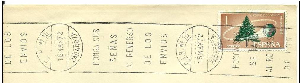 C.I.R. Nº 10 / 17 DIC 74 / ZARAGOZA / PONGA SUS SEÑAS AL REVERSO DE LOS ENVÍOS