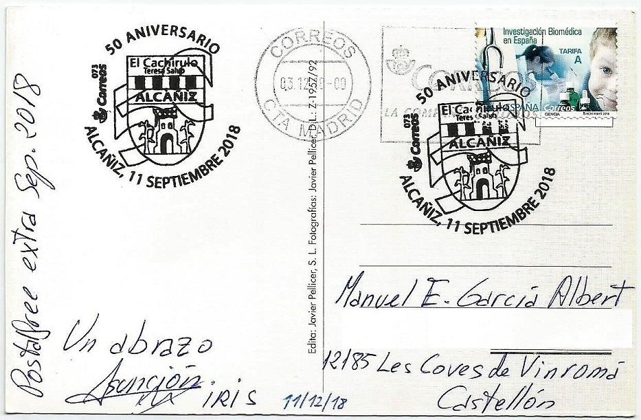 mega60 escribió: 01 Nov 2019, 17:58 No soy funcionario de Correos, el sobre anterior contenía esta postal con matasellos conmemorativo