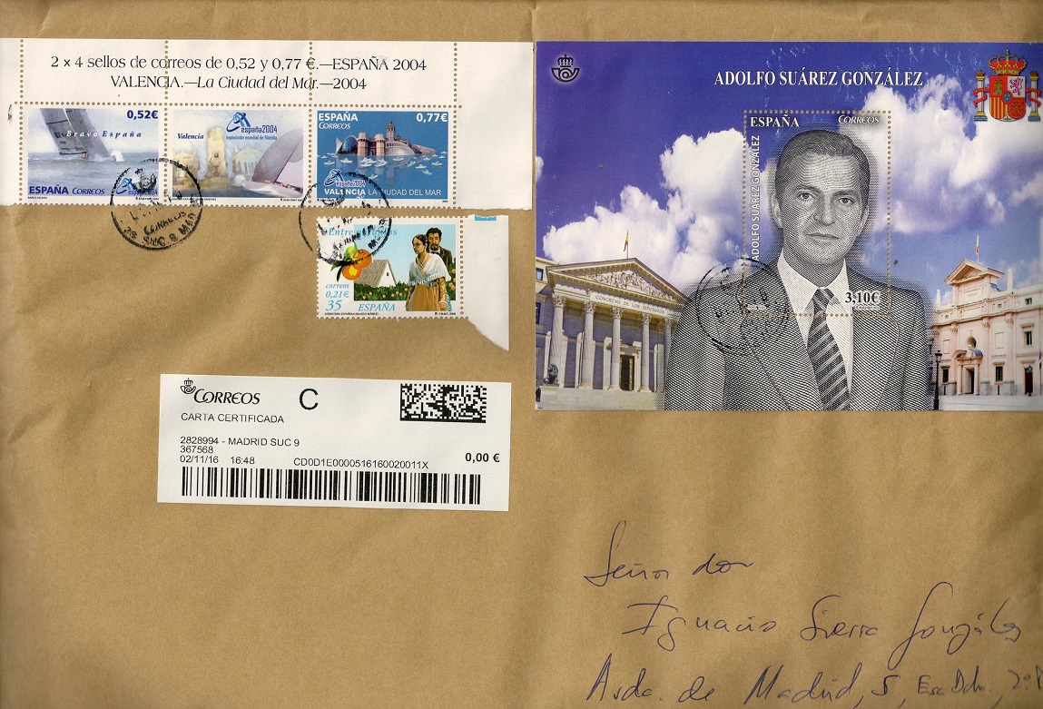 Y Correos el reciclaje y el ahorro ya que, al no estar matasellados los sellos, los mismos se pueden reciclar por el destinatario y ahorrarse el coste de un envío posterior.