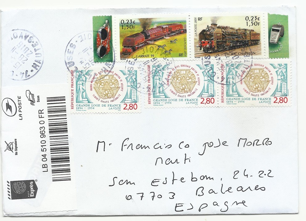 La tira inferior de tres sellos de tu sobre francés que expones, es de mi temática MASONERIA, así que si el sobre integro te sobra o te quieres desprender de él, yo lo admitiría/asimilaría/recogería/acogería/adoptaría/cambiaria/compraria :D :wink: :mrgreen: