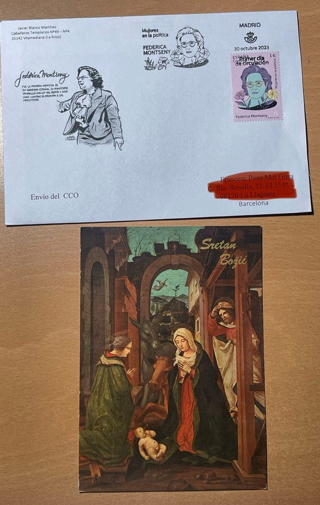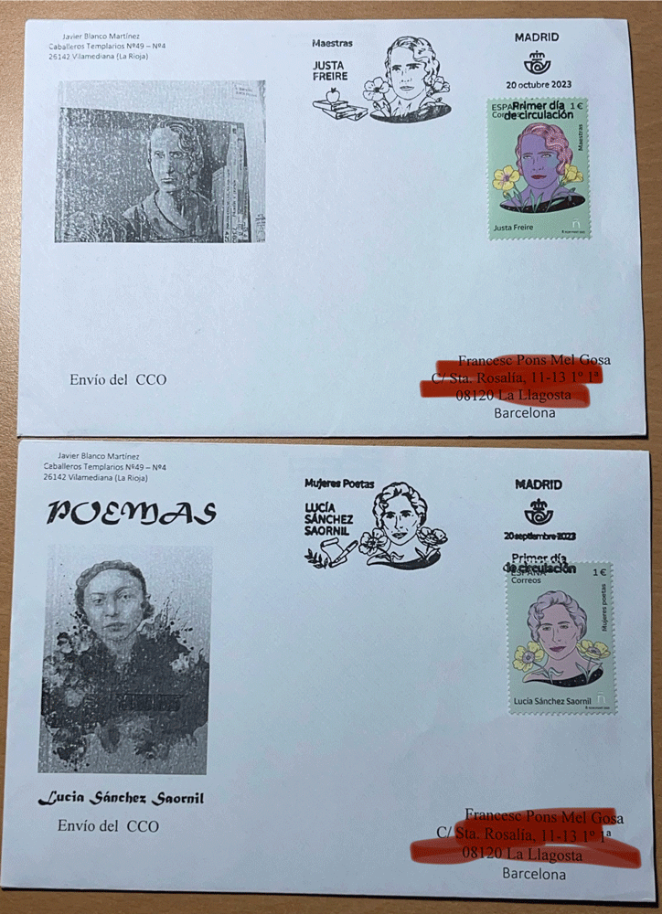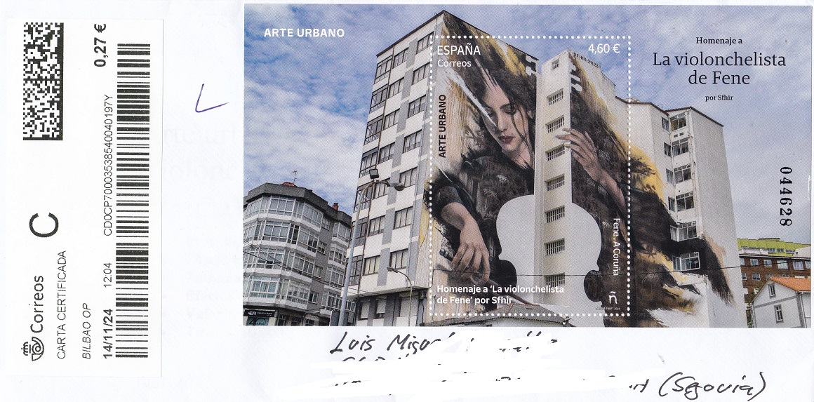 Recibido hoy certificado de Juan José, con uno de las últimas emisiones La Violonchelista de Fene, precioso