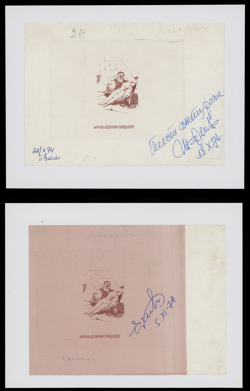 También nuestro Goya ha sido instigado en el espacio filatélico por la gran artista Lydia Mayorova, que a finales de 1974 grabó en Moscú la viñeta de este sello búlgaro.