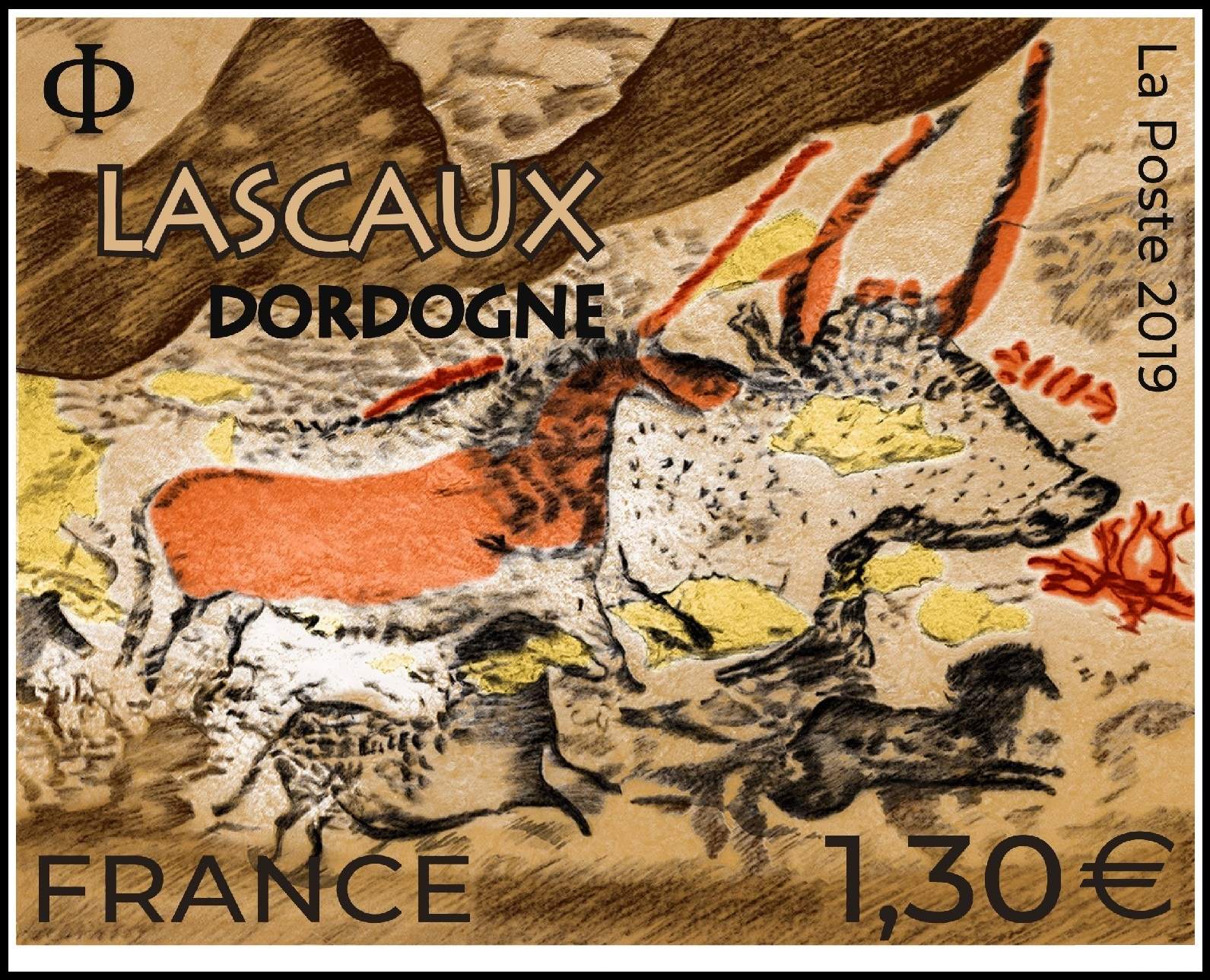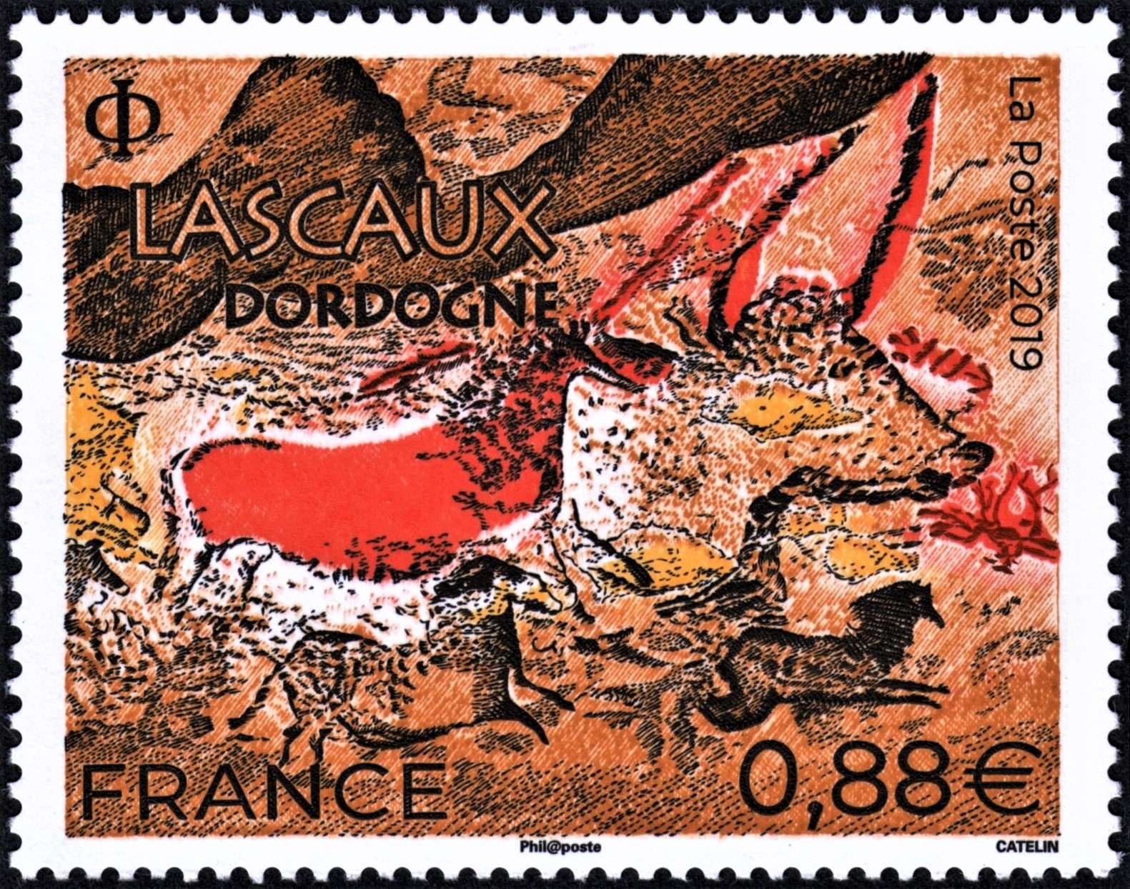 Francia, 2019, Pintura rupestre de la cueva Lascaux en Dordogne. Diseño y grabado de Elsa Catelin. Calcografía