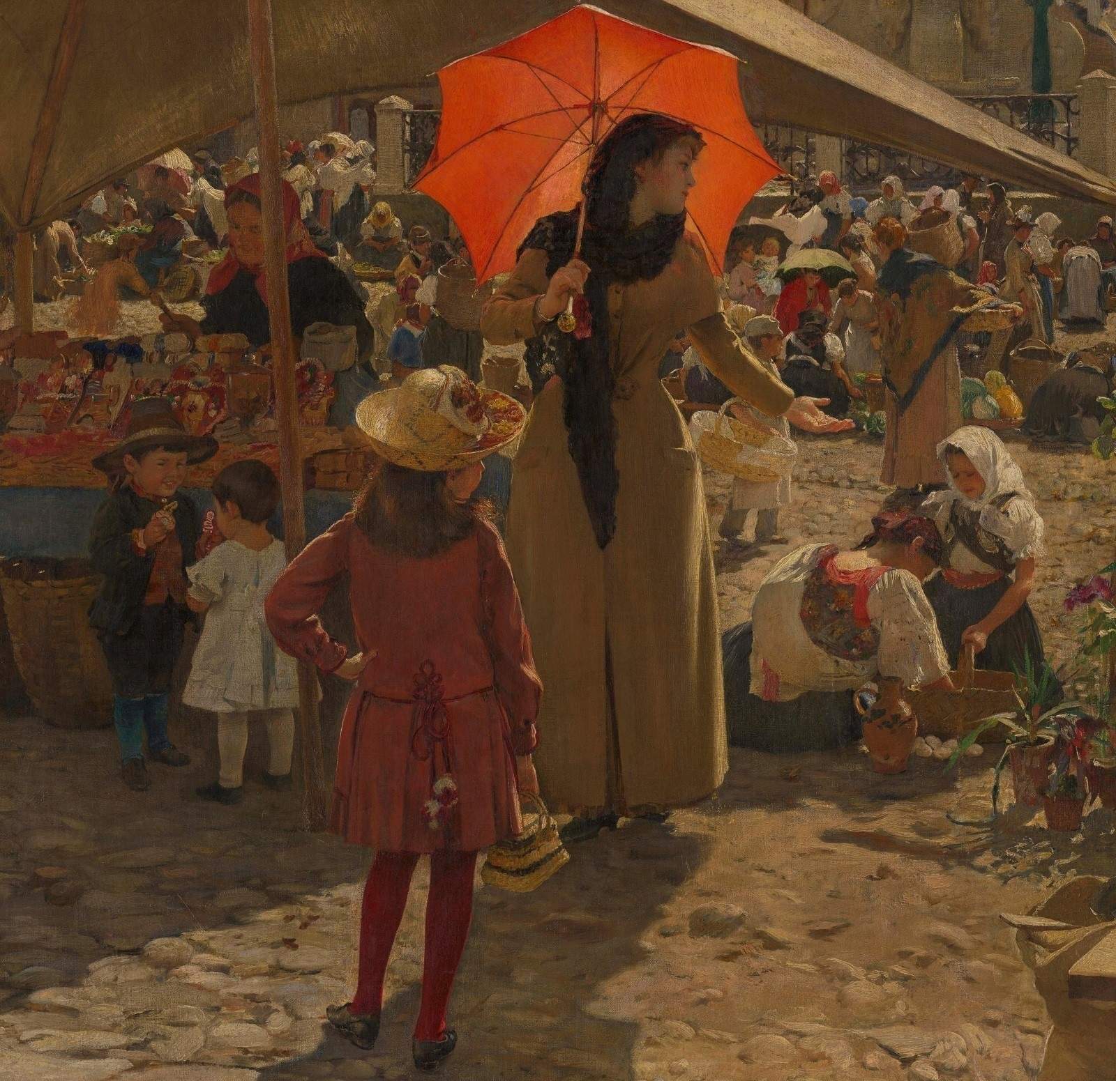 “Mercado de Banská Bystrica” (1889), de Dominik Skutecký; óleo sobre lienzo, 83.3 × 113.5 cm