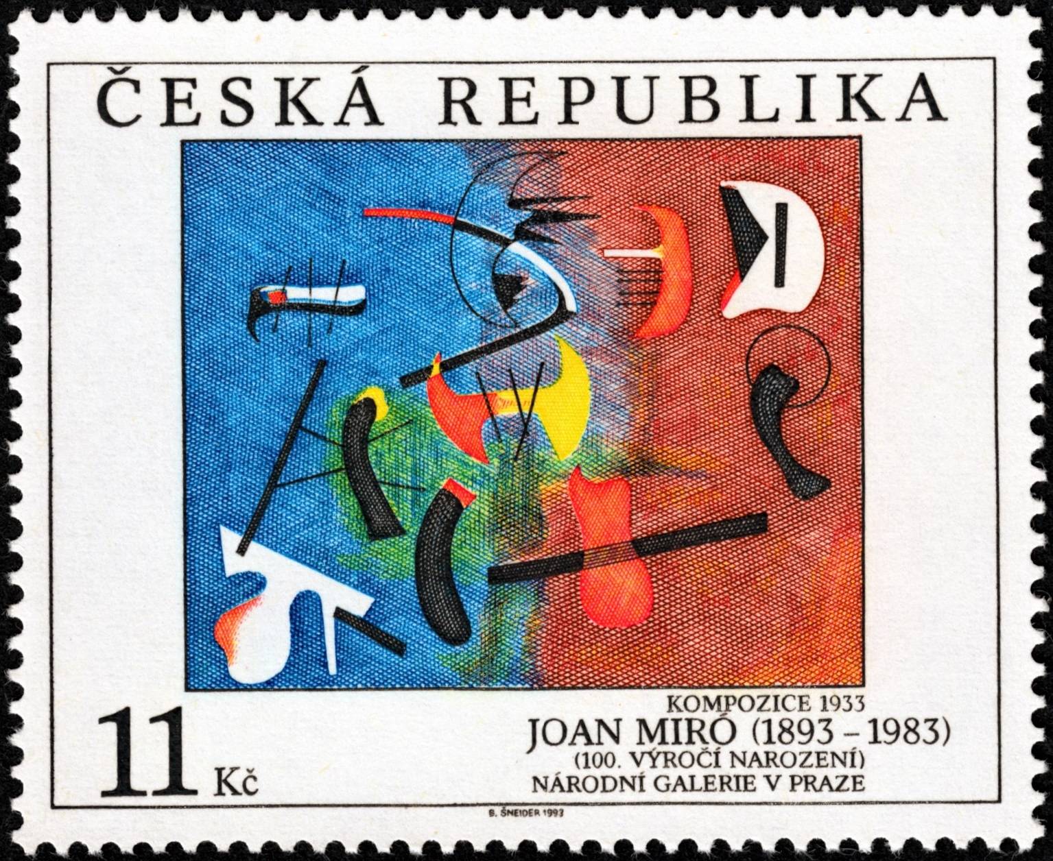 República Checa, 1993, Arte. Joan Miró, “Composición”. Sello diseñado y grabado por Bohumil Šneider. Calcografía