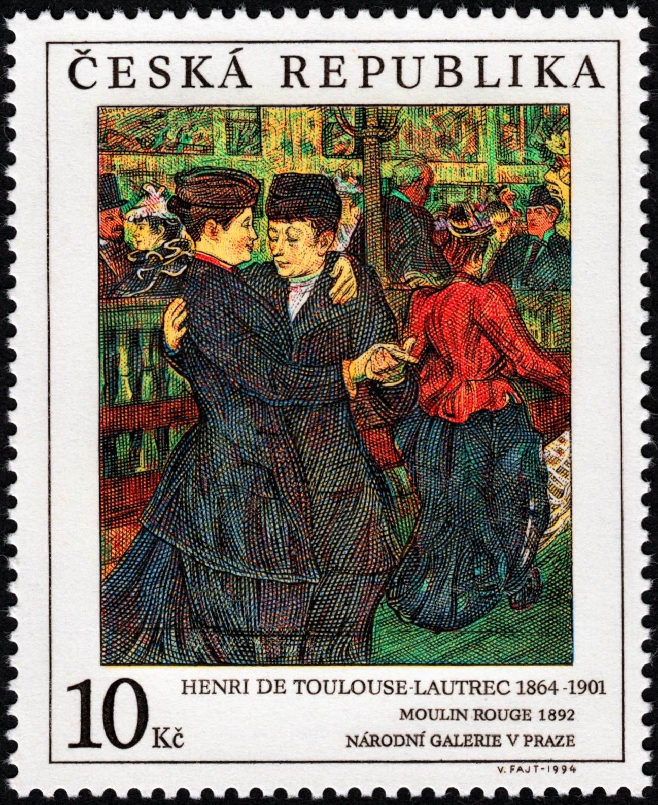 República Checa, 1994, Arte. “Moulin Rouge”, de Henri de Toulouse-Lautrec. Sello diseñado y grabado por Václav Fajt. Calcografía