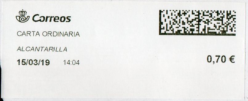 ALCANTARILLA / CARTA ORDINARIA / 15-03-19